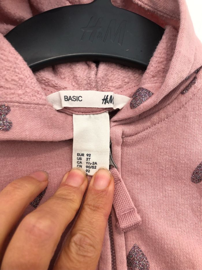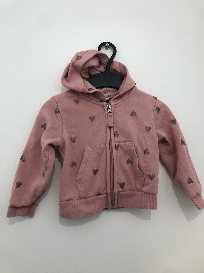 Sweat zippé H&M taille 92 rose à coeur gris - photo numéro 1