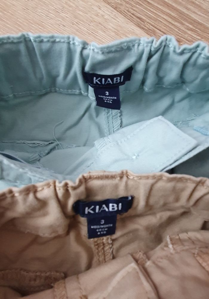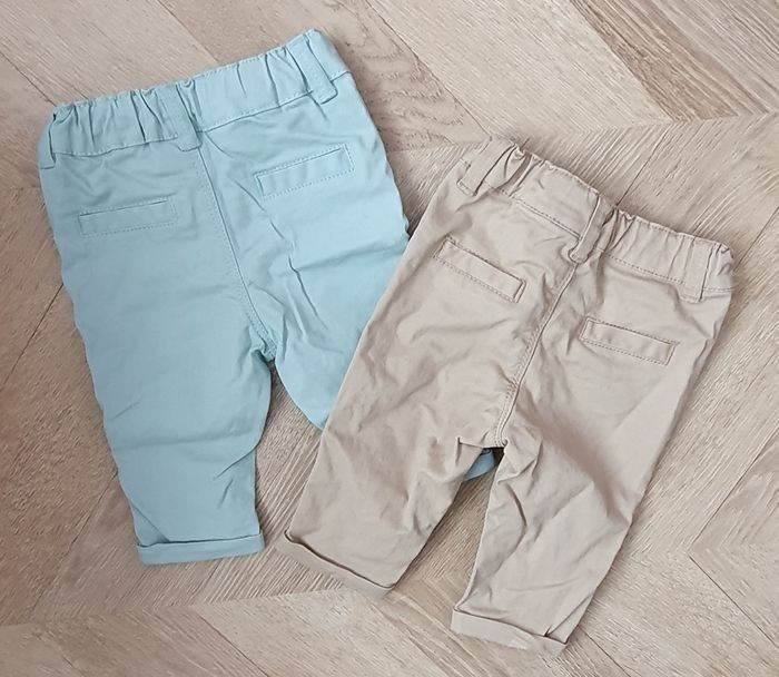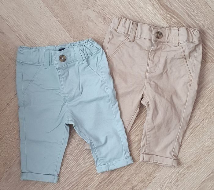 Lot de 2 pantalons Vert d'eau lavé jamais porté Beige porté 1 fois T 3mois