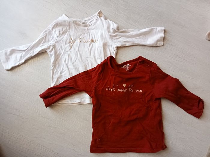 T-shirts Bordeaux et blanc En très bon état Aucune tâche, trou ou autre... Kiabi, 6 mois (43-69cm)