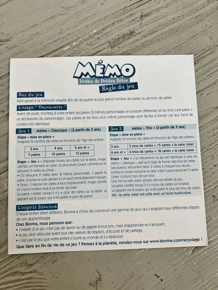 En parfait état et complet Jeu de mémorisation 3 ans et plus.