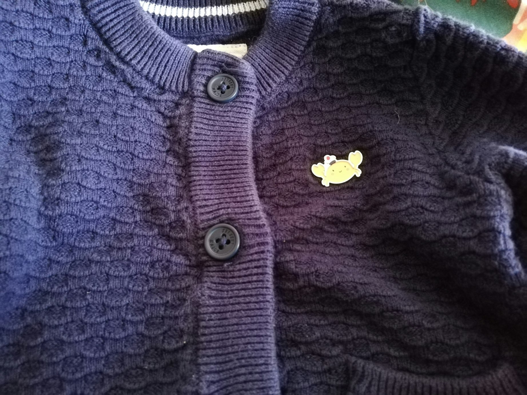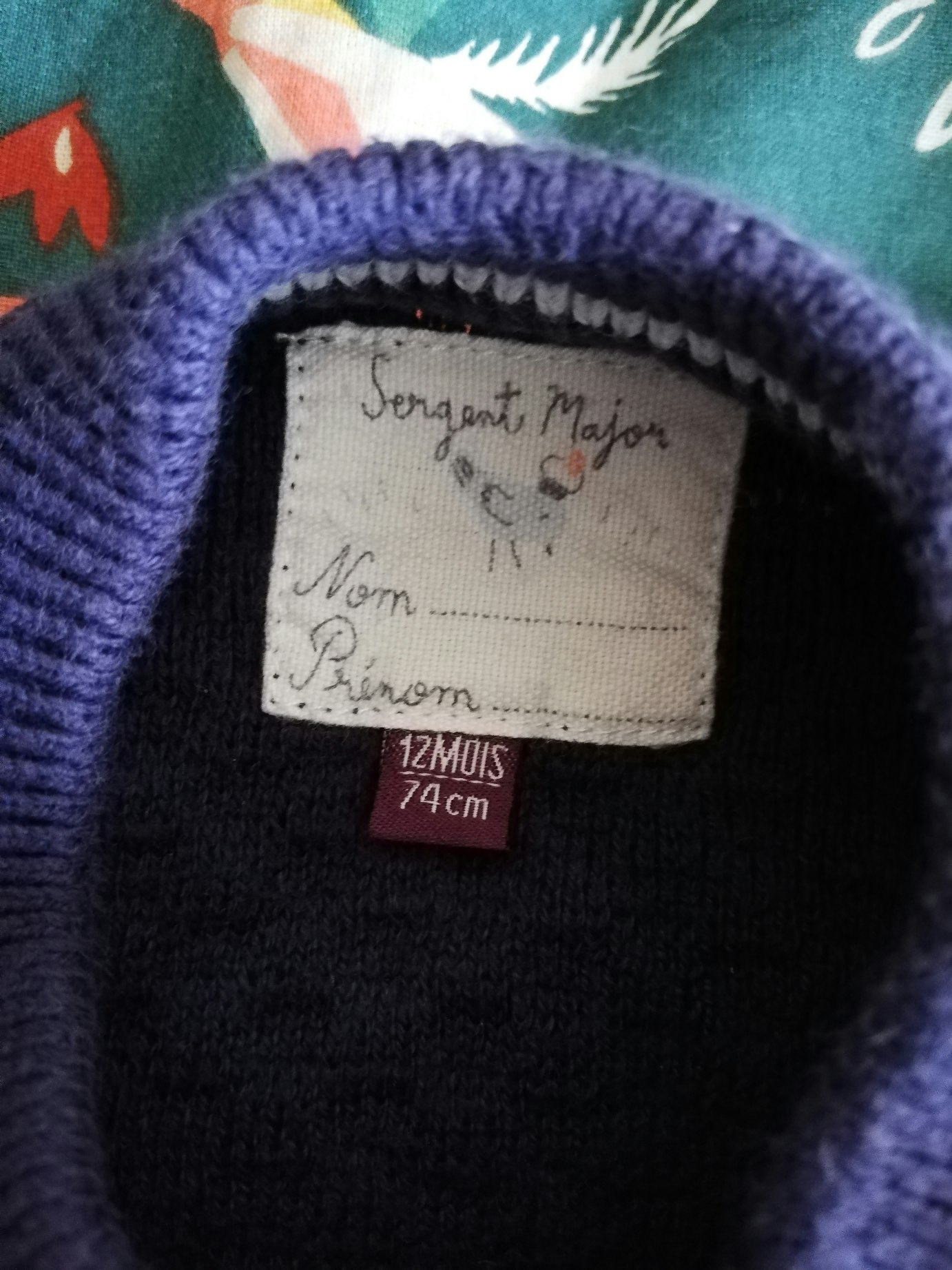 Gilet bleu de chez sergent major En très bon état motif petit crabe en haut. Très jolie Taille 12 mois Acheter cette été.