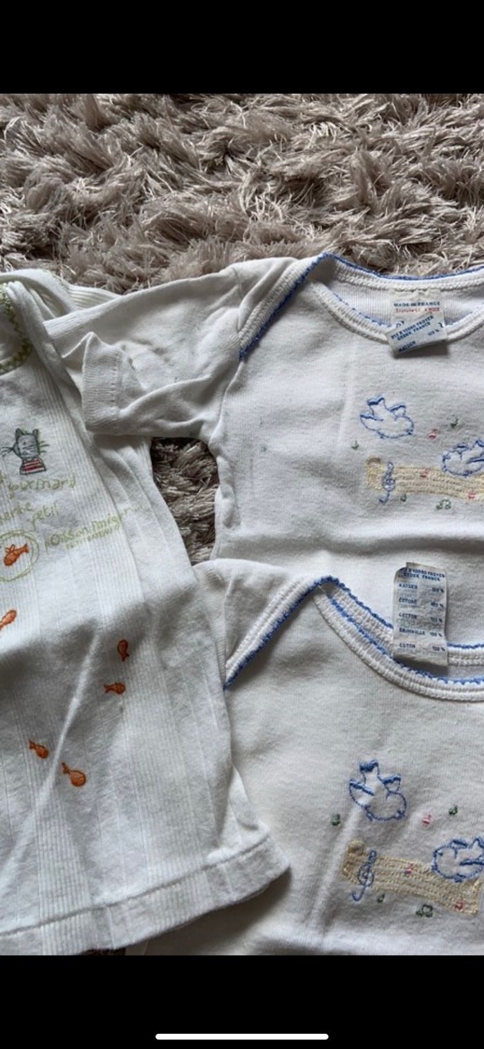 Lot de 3 tee-shirts/bodies bébé 2 (à droite) de marque absorba (celui du haut à de la teinture verte sur la manche, voir photo il est pourtant neuf) et l’autre de marque petit bateau neuf 🚚 Envoi rapide et soigné, le jour même ou le lendemain. Réduction activée pour l’ensemble des articles, n’hésitez pas à me solliciter pour obtenir une réduction plus importante sur les lots. 💶