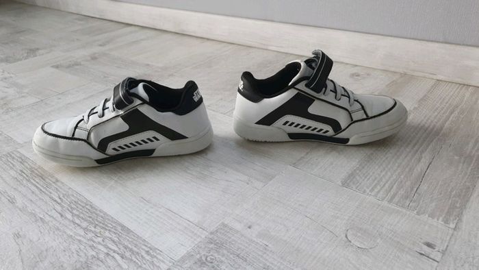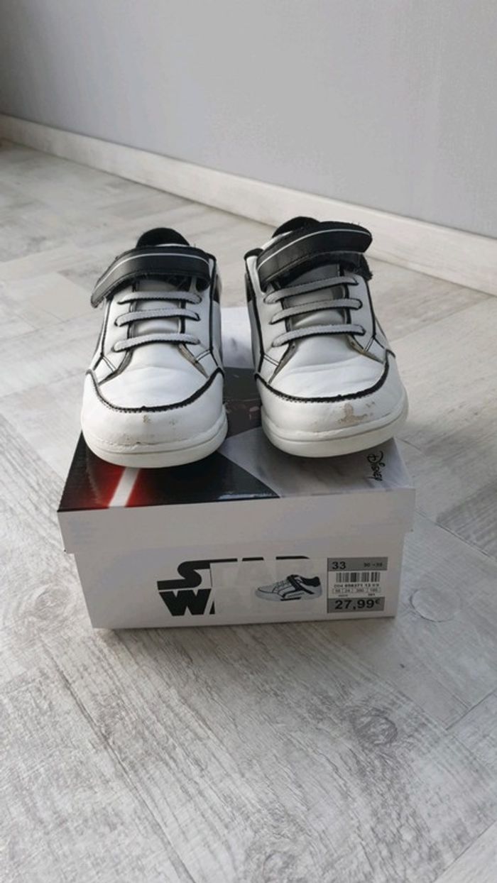 Baskets Pointure 33 Marque Star Wars Bon état, le bout à l'avant est un peu râpé (voir les 2 derrières photos), le reste est en bon état. Elles peuvent toujours dépanner