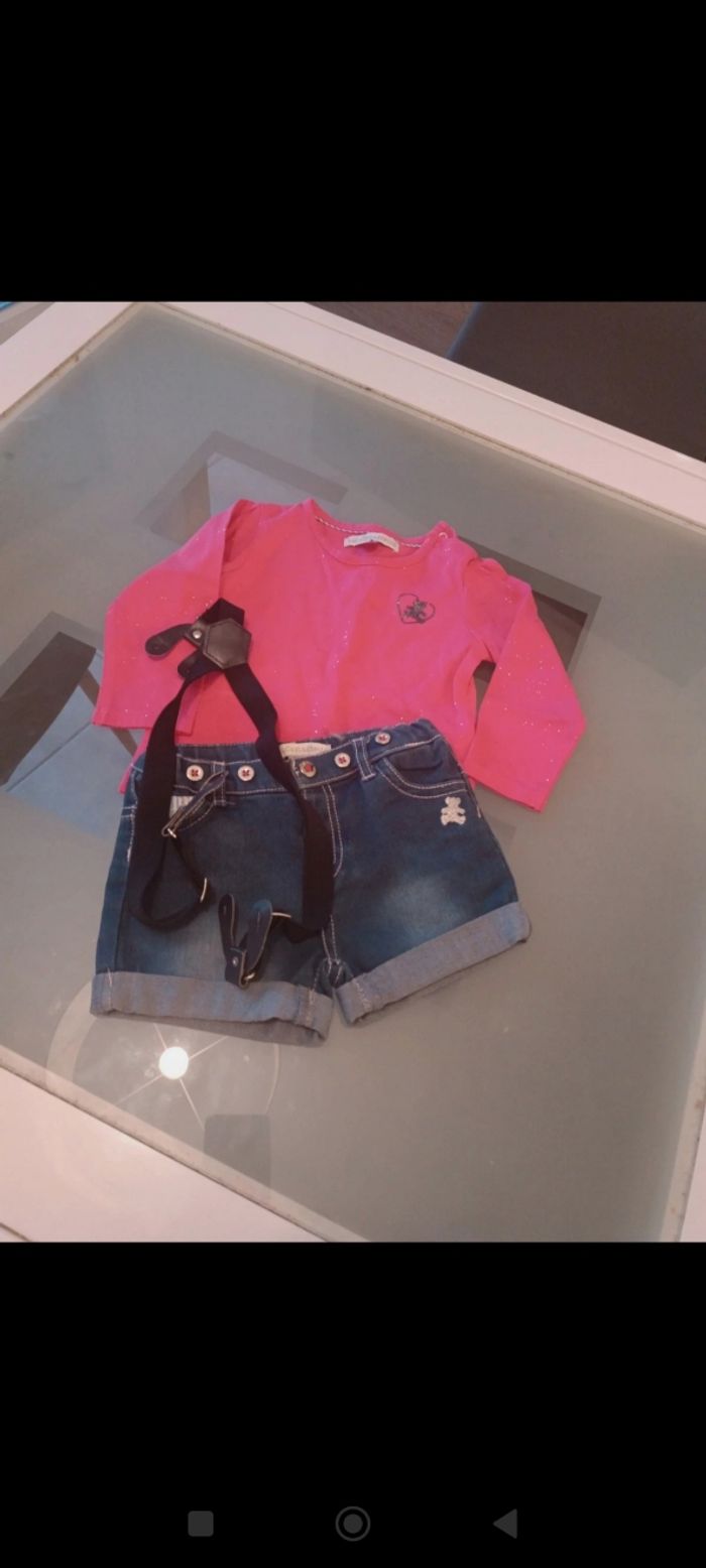 En très bon état . Short , brettelle et tee shirt manches longue ''lulu castagnette '' 18 mois