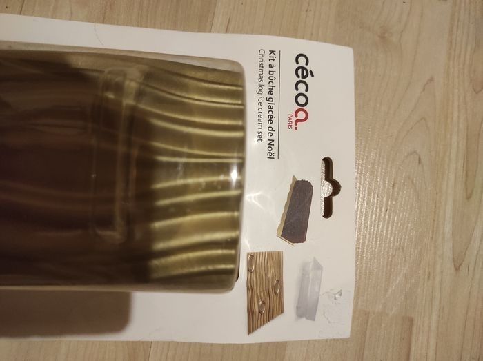 Kit pour bûche glacée de Noël Cécoa composé d'une gouttière plastique, d'un tapis silicone et d'une plaque de présentation dorée carton