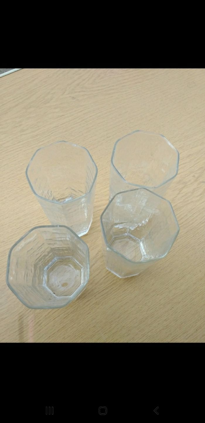 Lot de 4 grands verres en forme octogonal.