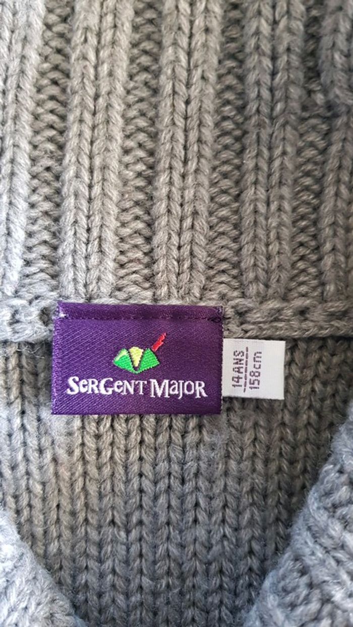 Gilet Taille 14 ans Marque Sergent Major Il a pas mal été porté et présente quelques défauts d'usure (genre de bouloche) voir avant dernière photo État satisfaisant