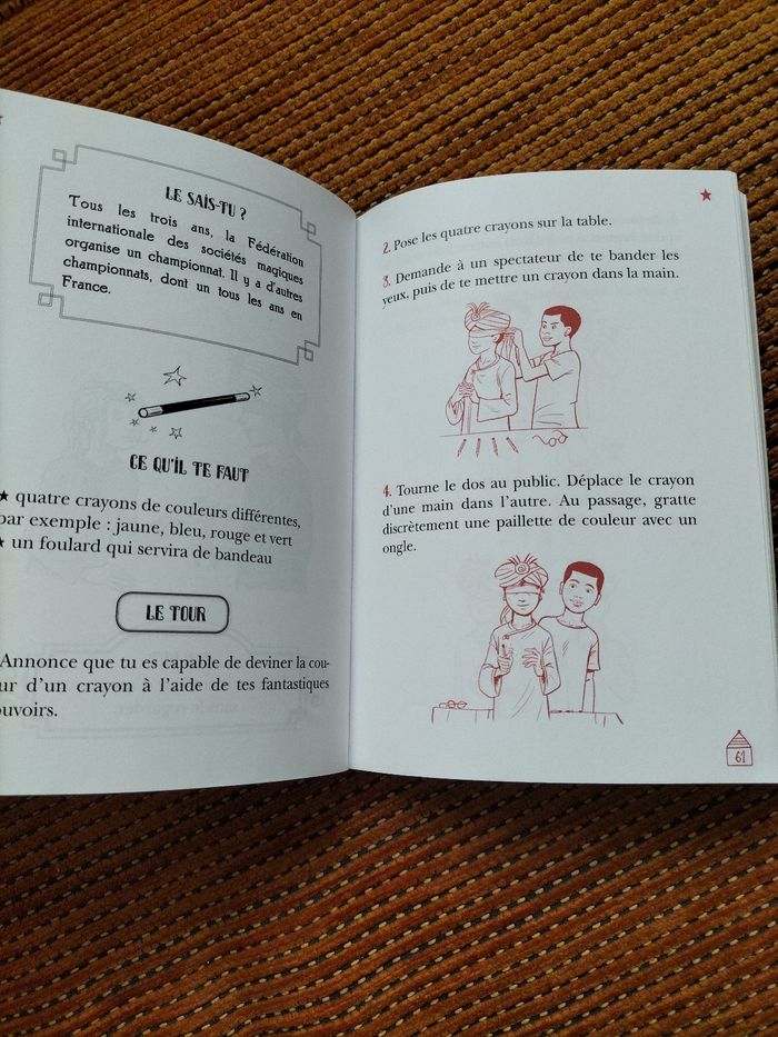 Livre pour apprendre la magie. N'hésitez pas à regarder mes autres annonces sur les livres et jeux sur la magie pour faire un lot. La 1ere page est un peu déchirée et le seconde il y a une inscription manuscrite.