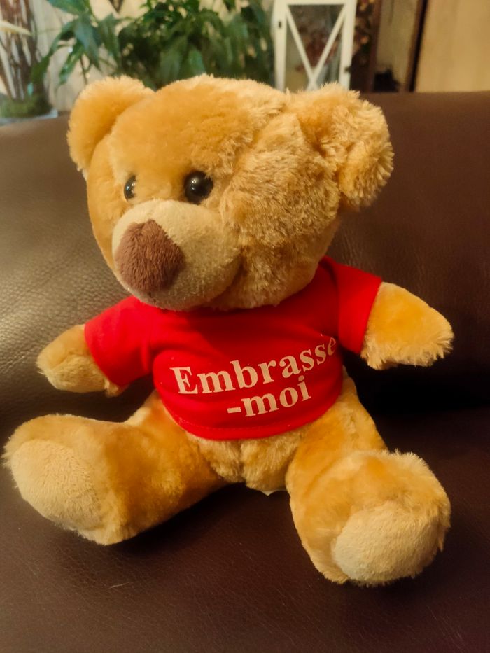 Ourson peluche tout doux Norme CE Tee shirt "embrasse moi"
