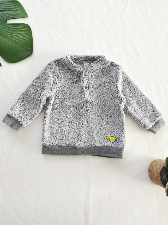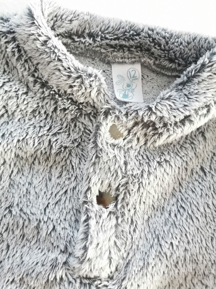 Pull gris tout doux 👶U tout petits Taille 12 Mois - 74 cm • Matière: 100% polyester • Col montant fermé par 2 boutons pression • Bien chaud 🌡️ • Tissu tout doux effet peluche 🧸 Parfait état 👌, très peu porté