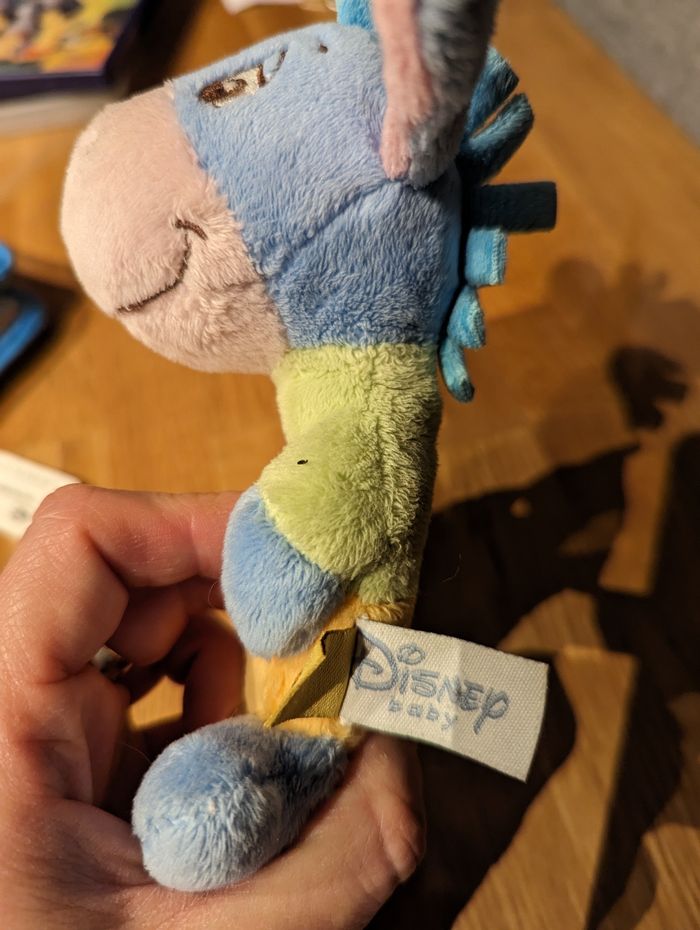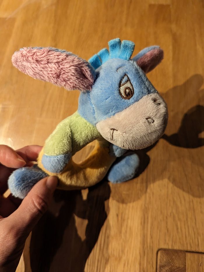 Le petit âne est de la marque Disney L'autre hochet est de marque Suavinex Le livre tissu est de marque Piccolia. Bruitages pour les 3 (papier bruissant,...) Lavables