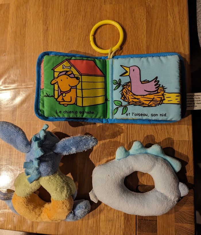 Lot de 3 jouets d' éveil : hochets et livre tissu (Disney,.. ) - photo numéro 1
