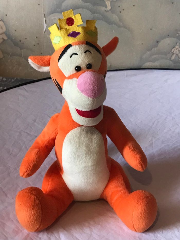 Petit Tigrou Tigre Orange Roi Couronne Jaunes Pierres Précieuses Tête Peluche Petits Enfants Bébés - photo numéro 10