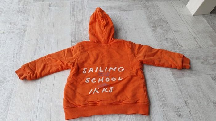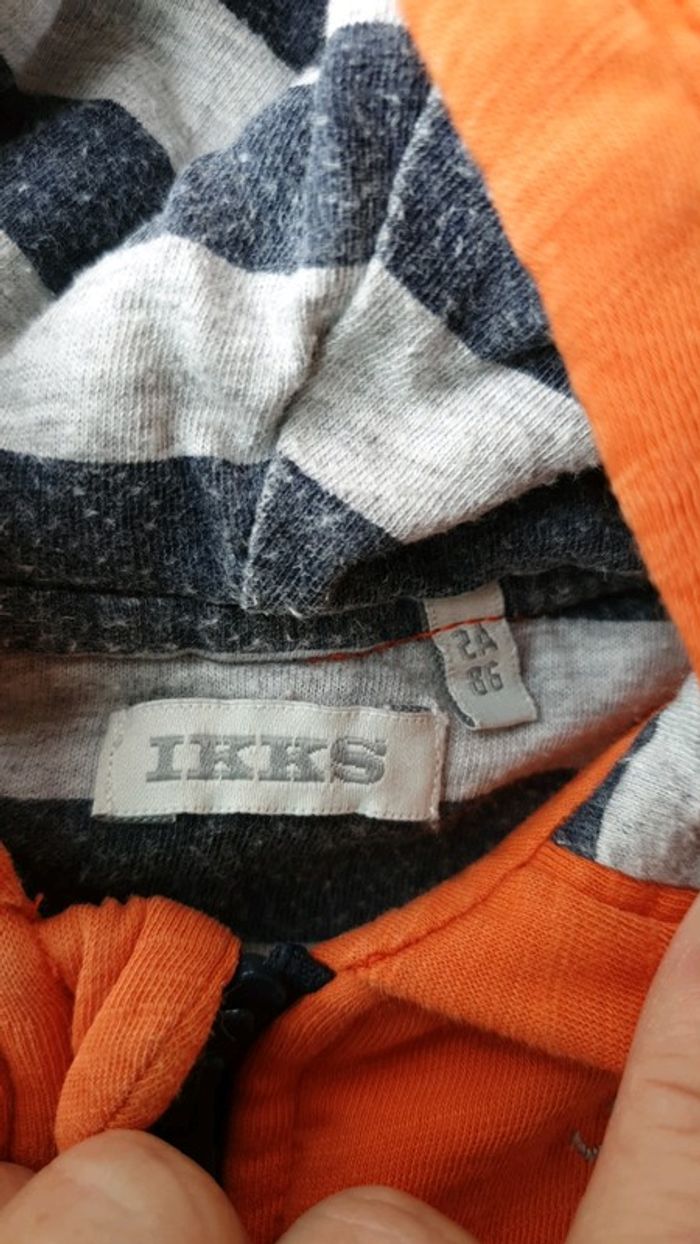 Blouson Taille 2 ans Très bon état, il y a juste en bas de la poche de droite (voir photo) il y a 2 tous petits trous. Un point pourra très facilement palier à cela (je ne suis pas couturière) Le reste est en très bon état Marque IKKS