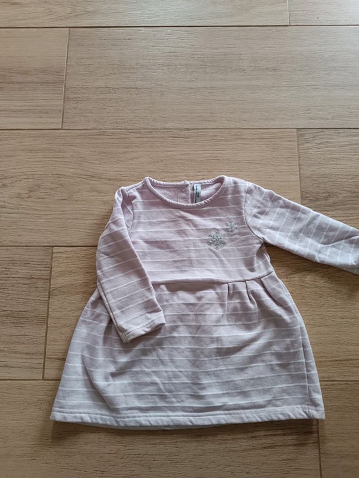 Robe pull Rayée mauve et blanc, motif flocon Très bon état Taille 18 mois