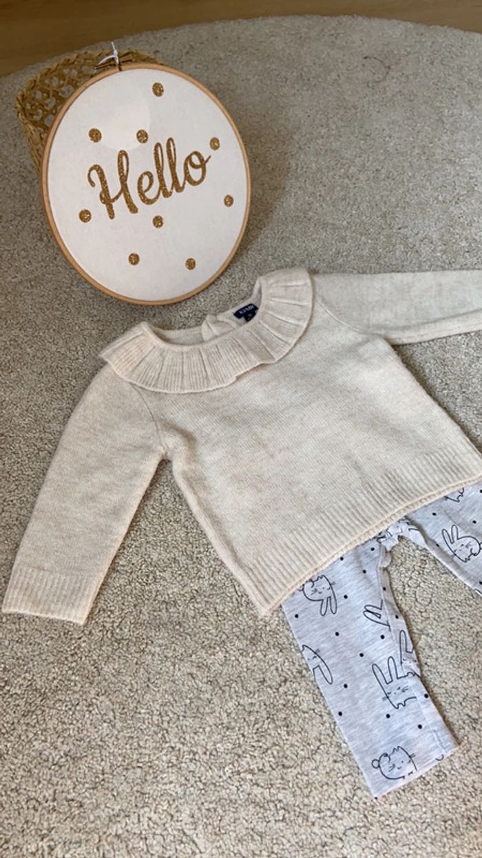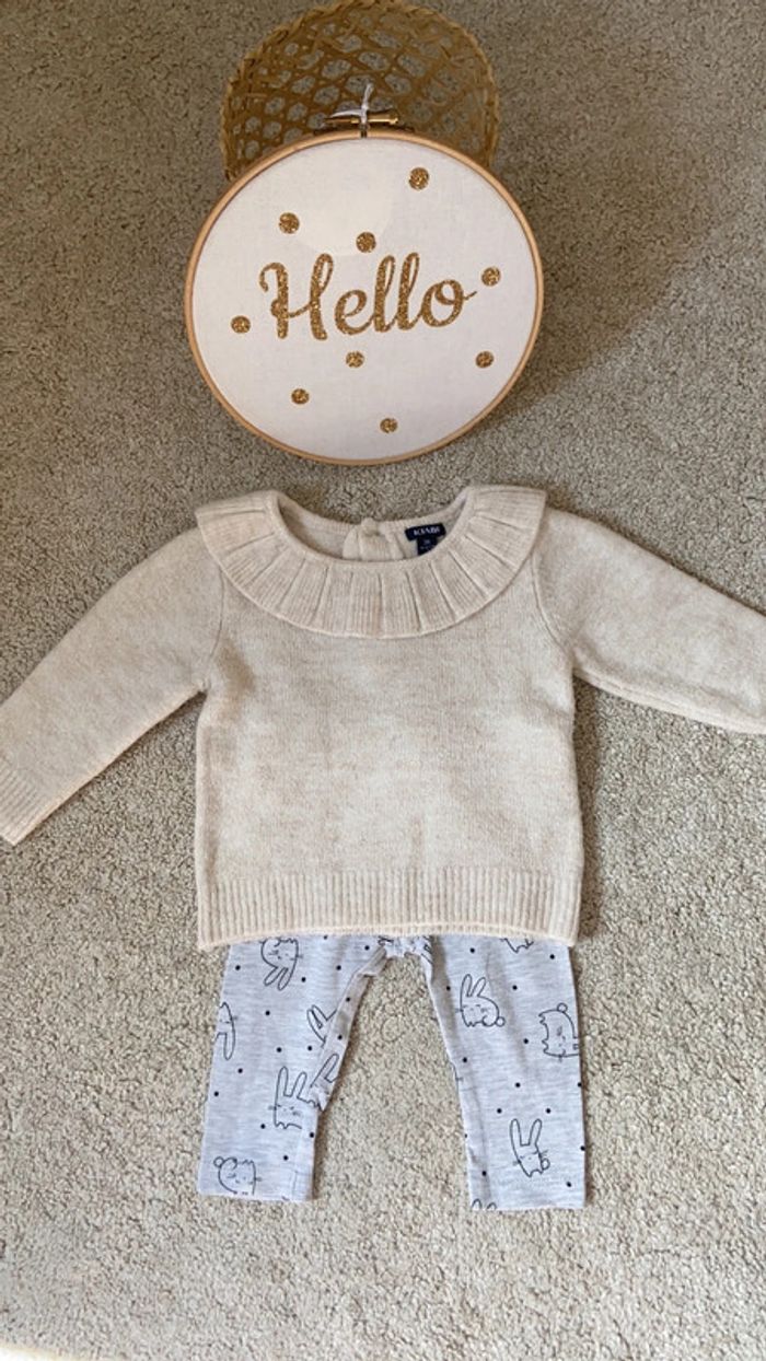 TBE Kiabi Pull à volant et legging Taille 6 mois (pull indique 3 mois mais taille grand)