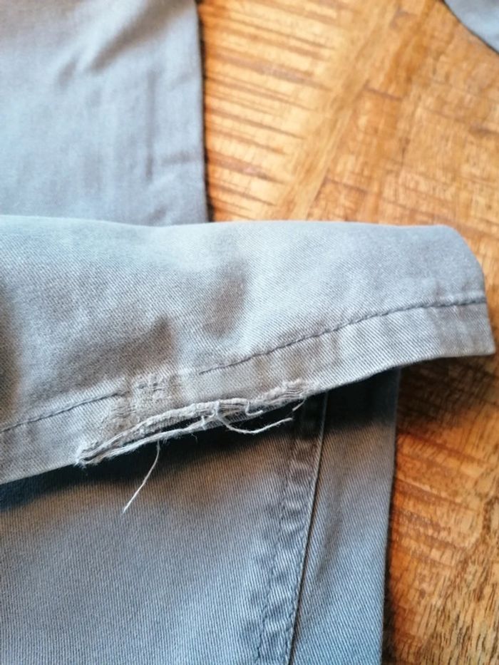 Pantalon droit en bon etat usure au pied sur une jambe couleur taupe
