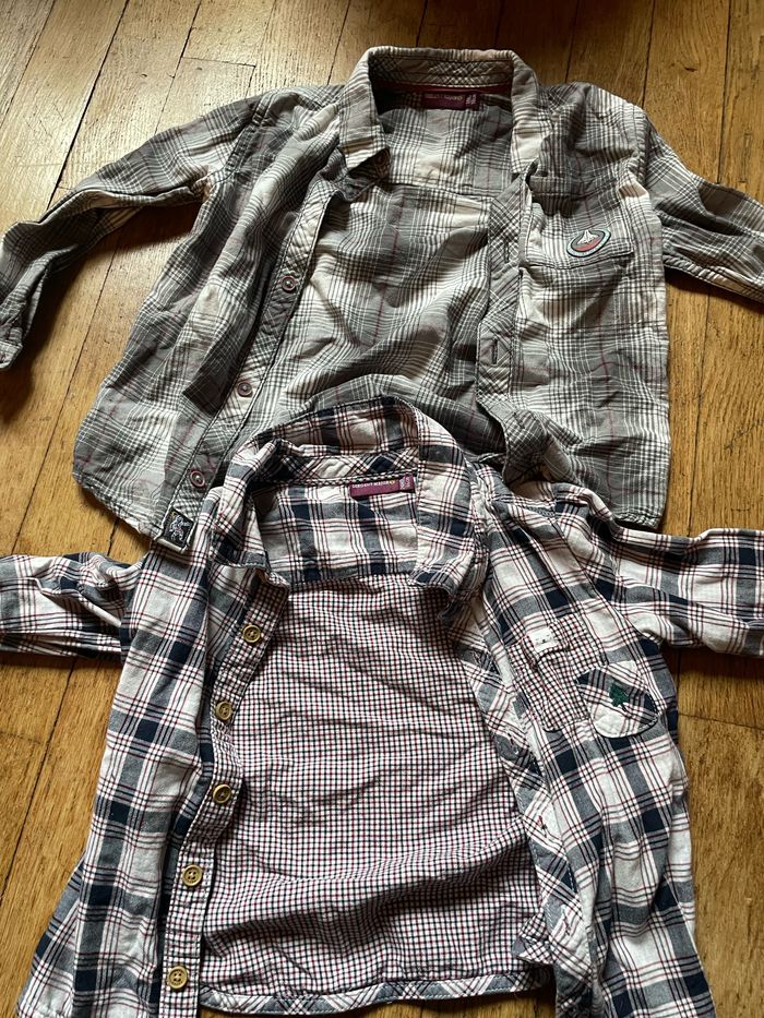 Celle du dessu est gris à carreau et celle du dessou est bleu. Les deux sont de 24 mois en très bon état.