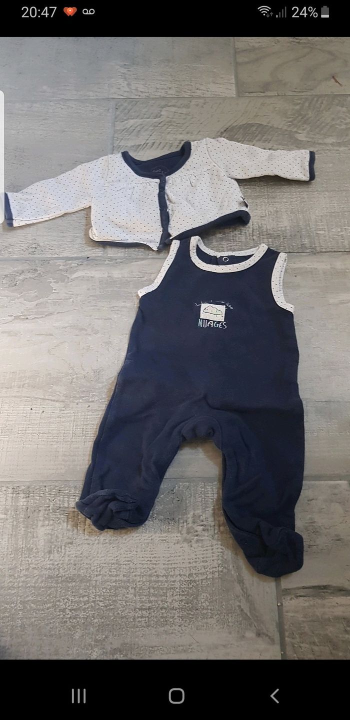 Pyjama avec gilet bleu et blanc tape à l'oeil