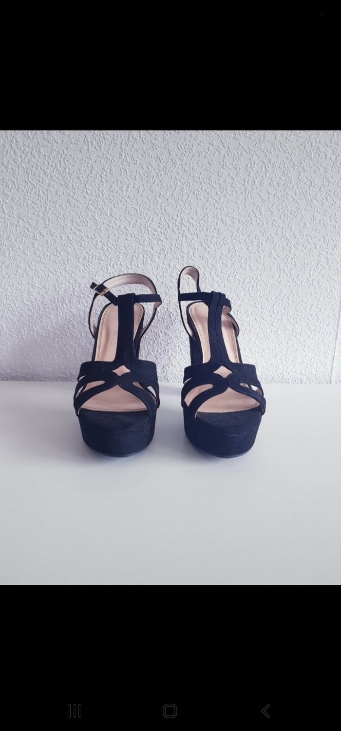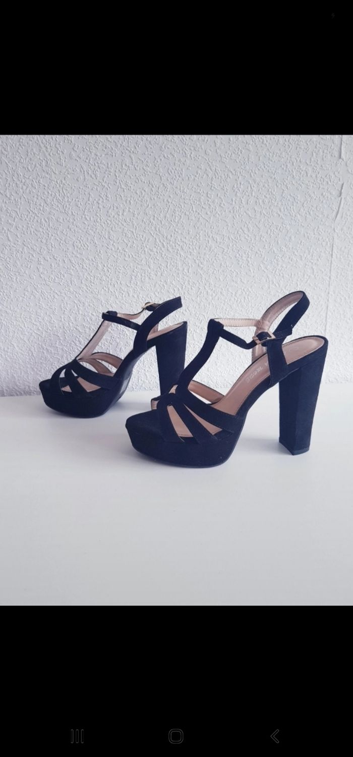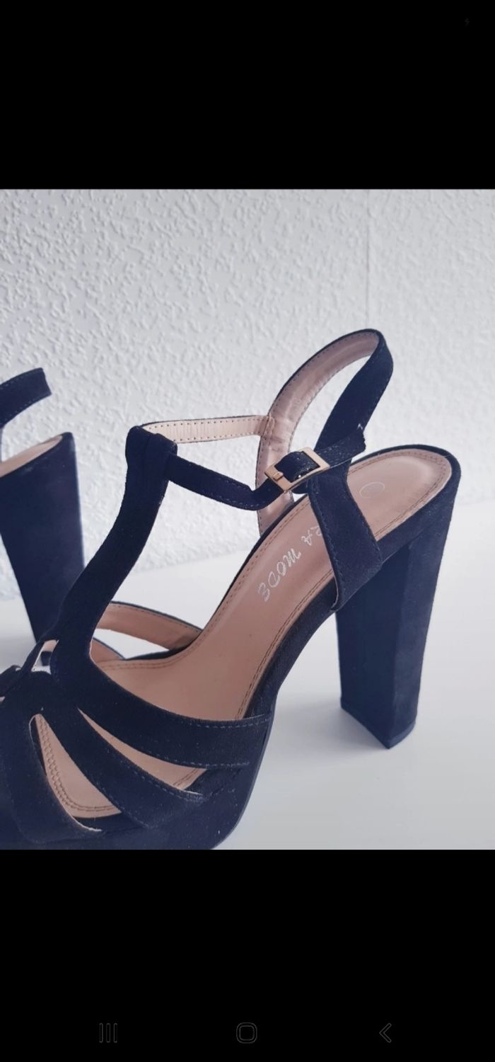 Tous mes articles Laura Mode : #lauramodesev Toutes mes chaussures : #chaussuresssev Toutes mes chaussures en 38 : #38sev 🚨 Prix fixe Sandales Marque : LAURA MODE Couleur : noir Pointure : 38 Talon : 13 cm Plateau : 4 cm État : neuf Les chaussures ont été portées lors de l'essayage uniquement. Effet suédé Vendues dans la boîte à chaussures d'origine. Retrait sur place ou envoi. #lauramode