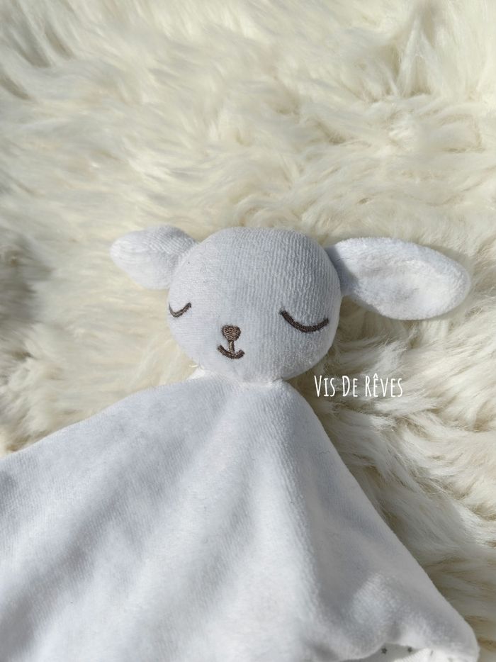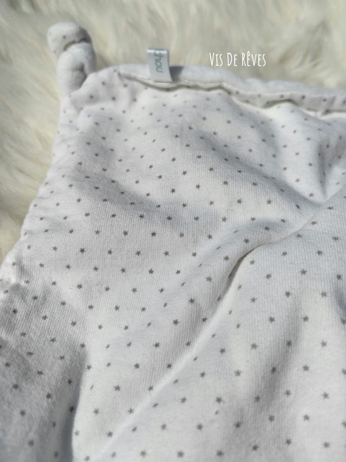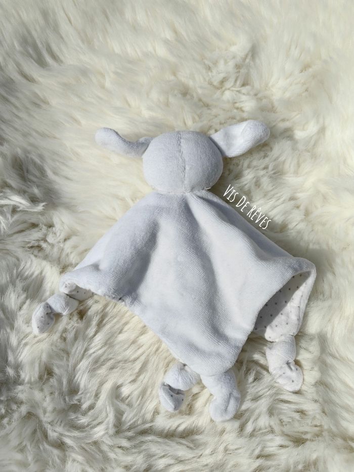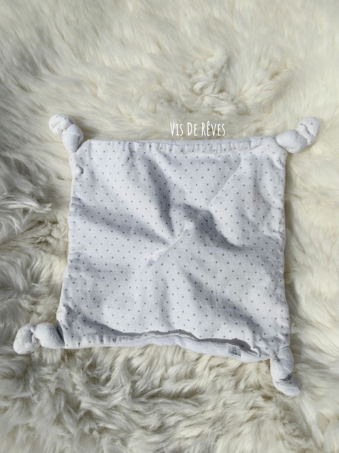 Doudou plat chien en velours blanc au recto et tissu blanc imprimé d'étoiles grises au verso. yeux fermés, endormi. noeuds au 4 coins du carré. Oeko-Tex Marque : BOUT'CHOU (Monoprix) État : Comme neuf, étiquettes coupées Vous achetez le doudou que vous voyez. Entièrement vérifié. Une recherche particulière ? Tout n'est pas en ligne, n'hésitez pas à me contacter 😊 Ref : A4 #VDR_CHIEN #VDR_BOITCHOU