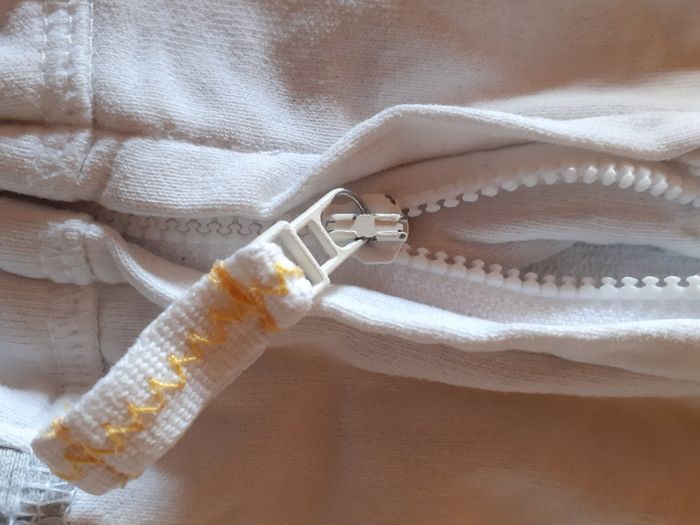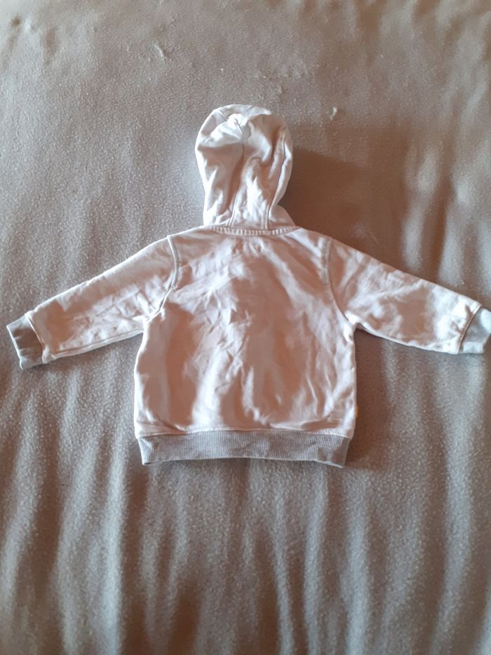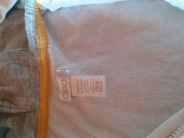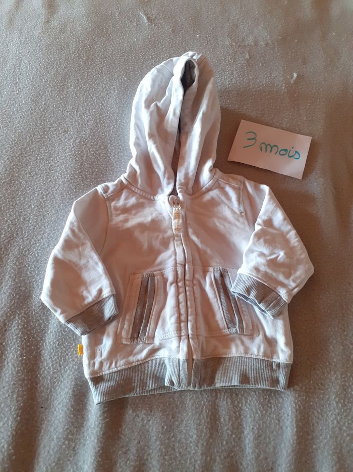 Veste / gilet zippé à capuche obaibi 3 mois Blanche et grise Très bon état (juste la couleur de la fermeture éclaire écaillée)