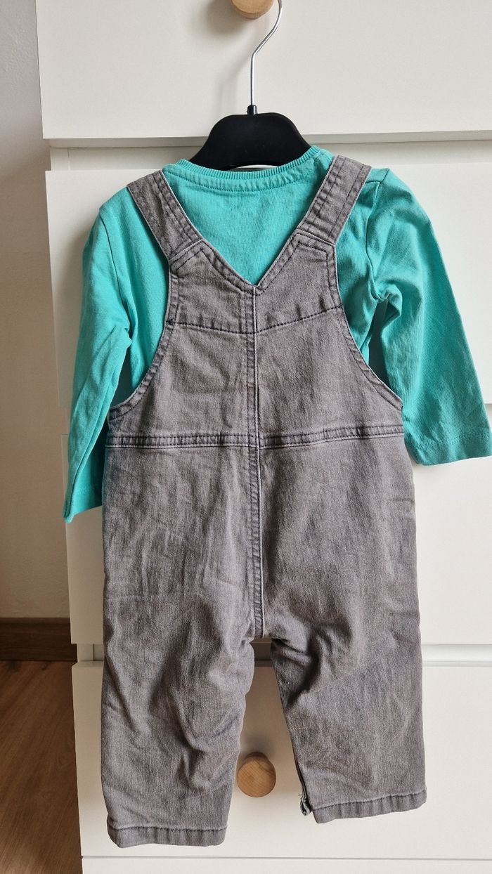 Bonjour Je vends cette ensemble salopette neuf Salopette grise type jeans avec un petit lacet assorti au tee shirt à manches longues (La couleur est un peu plus verte que turquoise en vrai selon moi) Taille 74 cm Neuf - lave jamais porté, min fils a passé l été en body et short ... Bon shopping