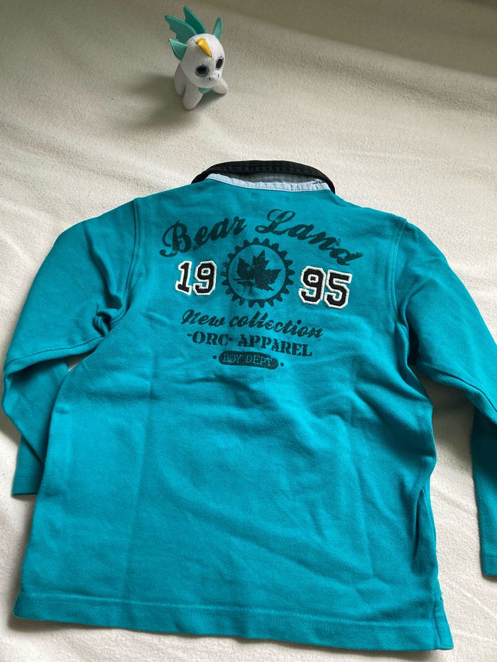 T-shirt polo manches longues Turquoise Orchestra et motifs ours « bear land » Très bon état Envoi possible via les 3 transporteurs (Boîte B)