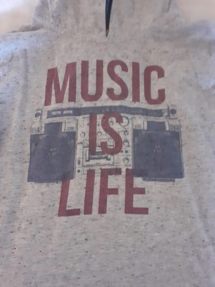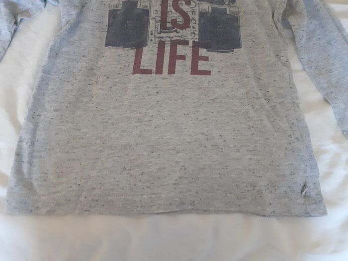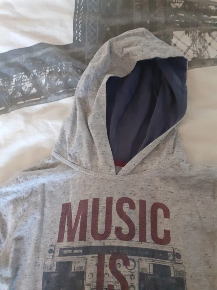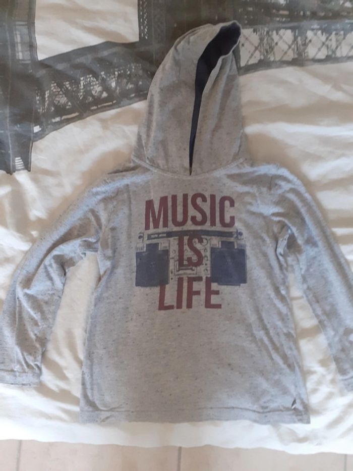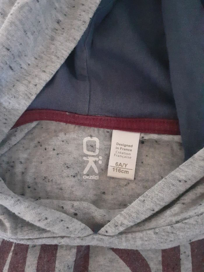 T-shirt manches longues gris Okaidi avec une capuche en très bon état Taille 6 ans #laurap2aa6ansgarçon