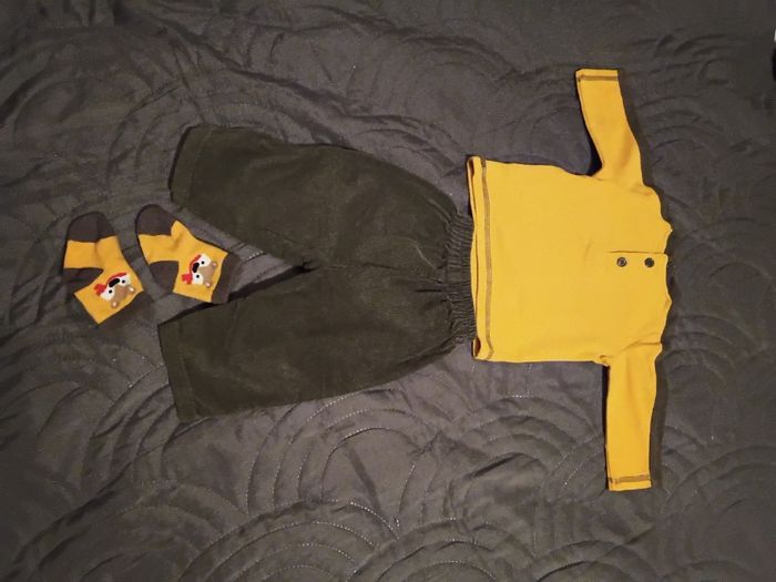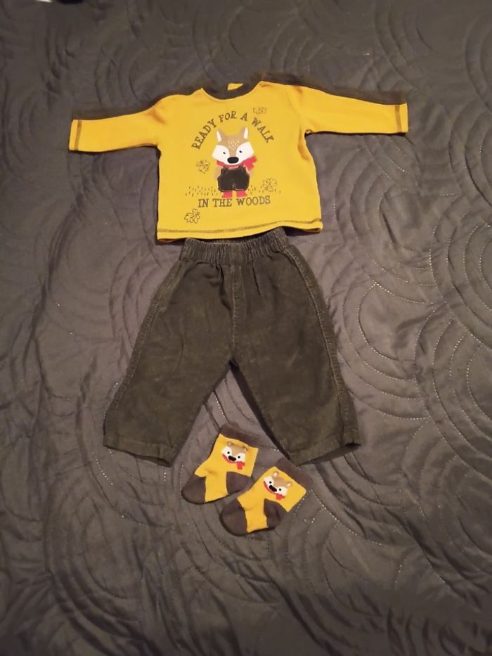 Ensemble bébé 3 mois pantalon velours non doublé. Pour l'Automne.