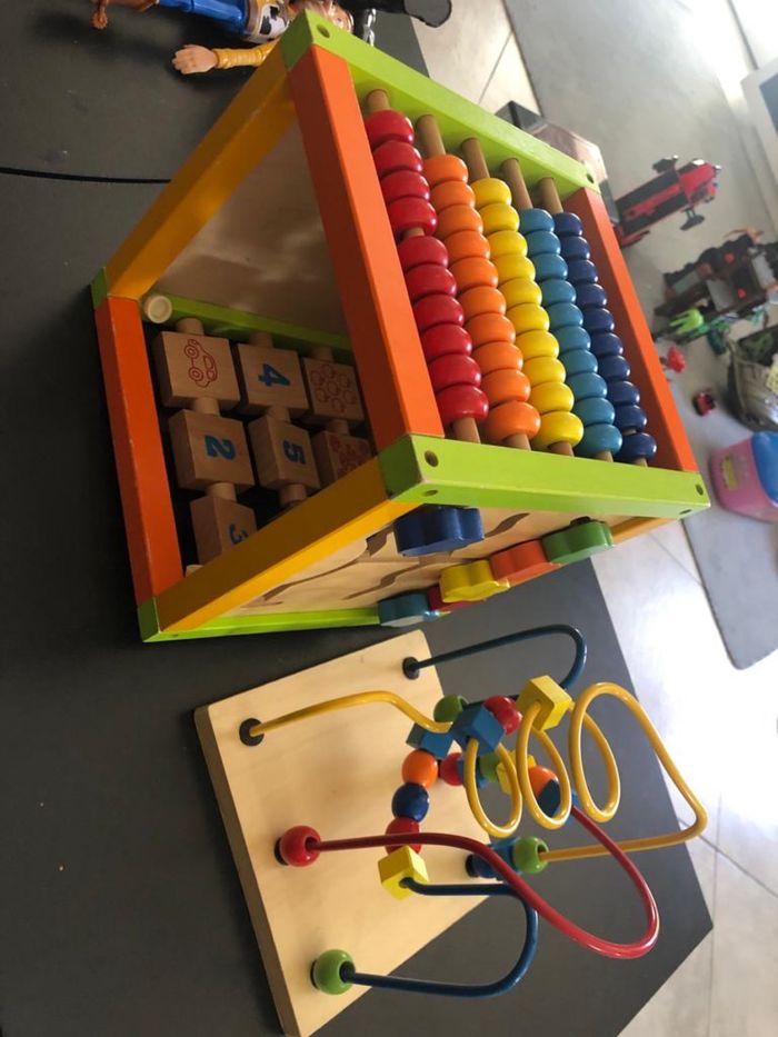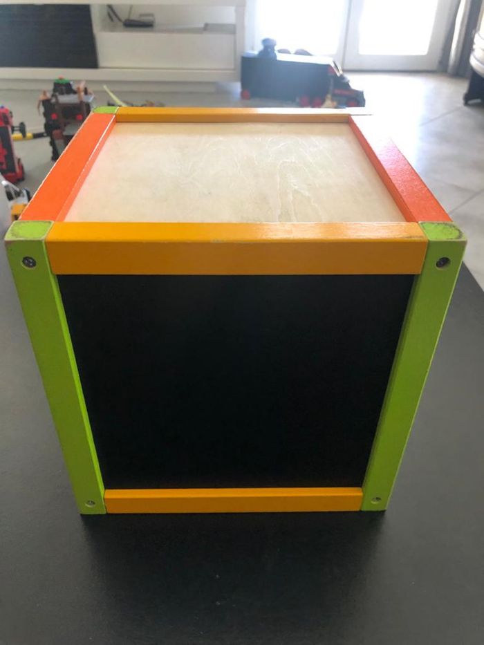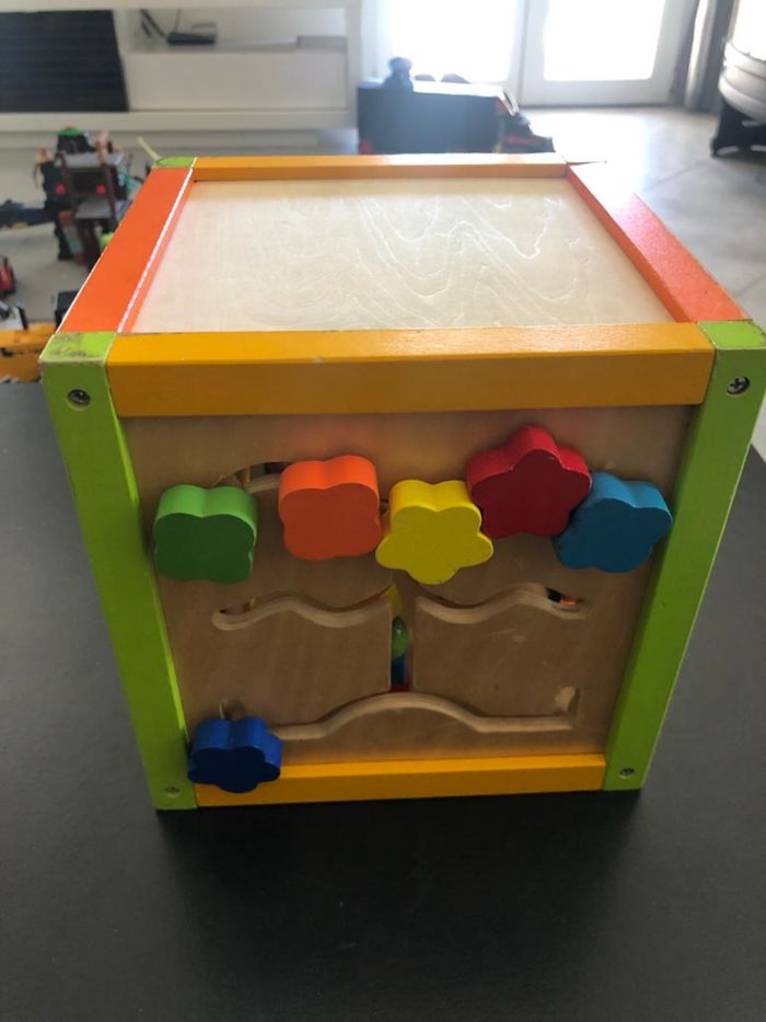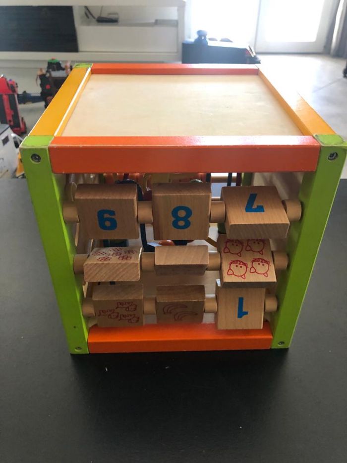 Cube de motricité en bois plutôt en très bon état malgré quelques endroit un peu sale mais avec un grand coup de nettoyage il sera comme neuf