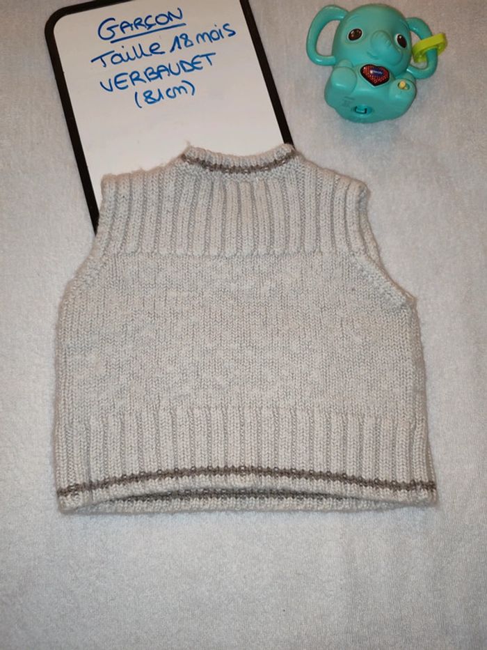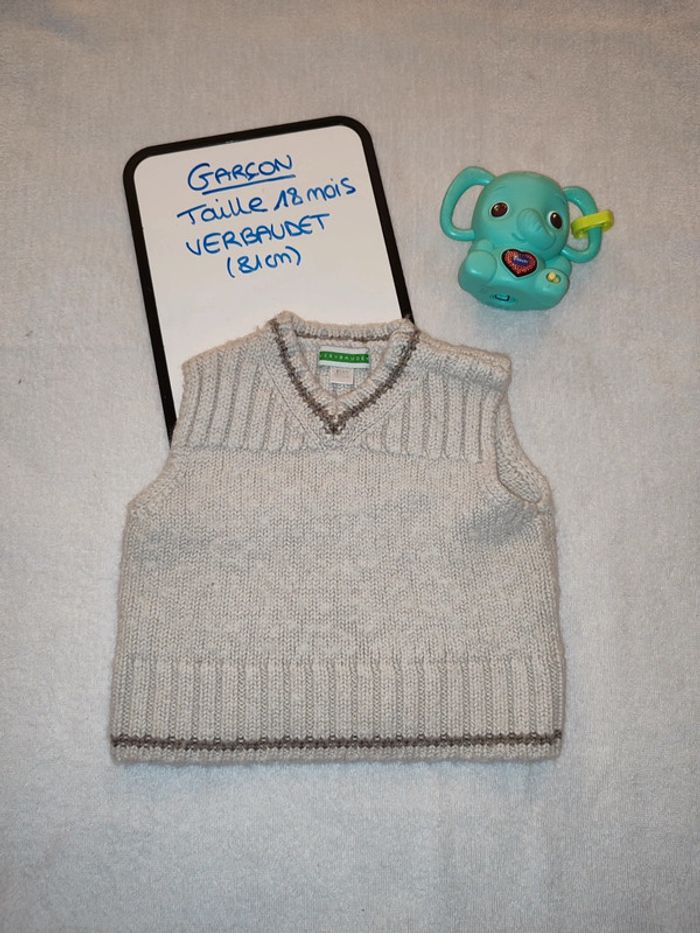 Pull sans manche en laine épaisse couleur beige, très bon état : Marque Verbaudet Taille 18 mois 81cm #celine76590garçon18mois
