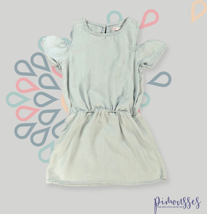 Robe manches courtes popeline effet denim bleu Gémo 4 ans fille