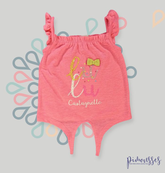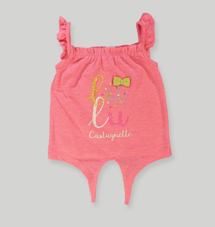 Tee-shirt sans manche jersey rose jaune nœud Lulu Castagnette 24 mois fille - photo numéro 1