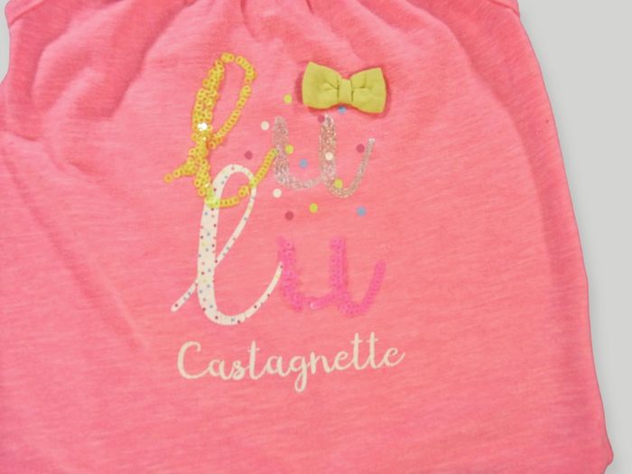 Tee-shirt sans manche jersey rose jaune nœud Lulu Castagnette 24 mois fille