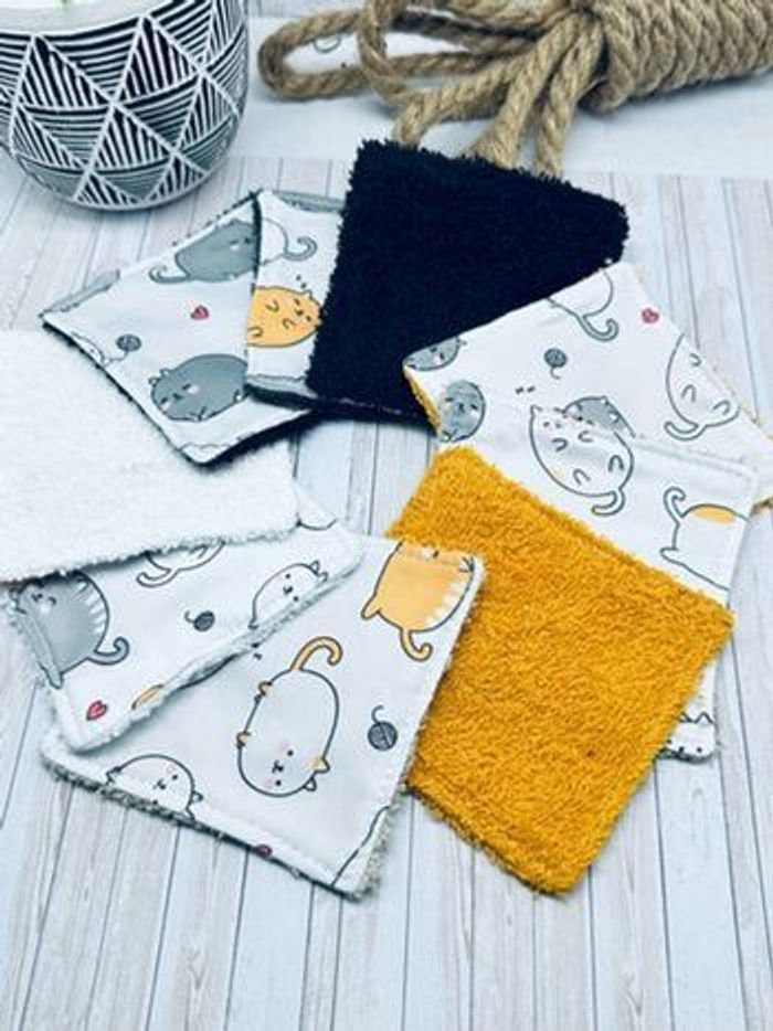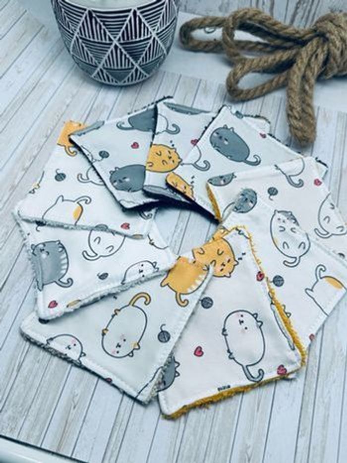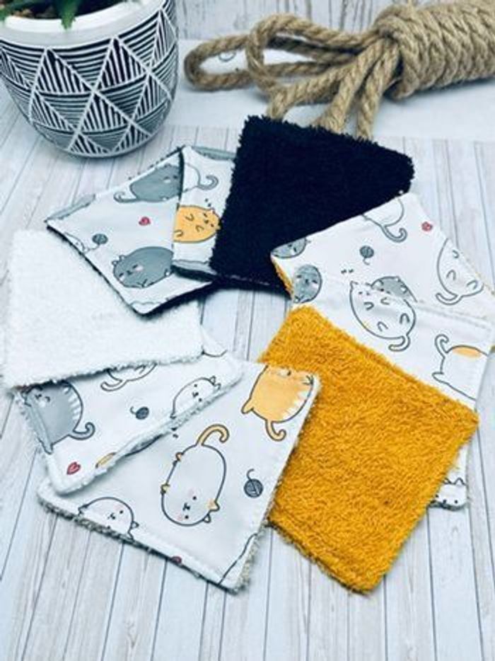 lingettes lavable et réutilisable lot de 10 taille 9x9 cm Avec un côté en éponge en coton lavable à 30° pas de sèche linge et l’essorage au minimum si possible à éviter pensez à humidifier la lingette avant utilisation plusieurs modèles au choix Envoi rapide et soigné Toutes les lingettes sur @ateliersdisalingettes possibilité de faire en plus grande quantité panier à 10€