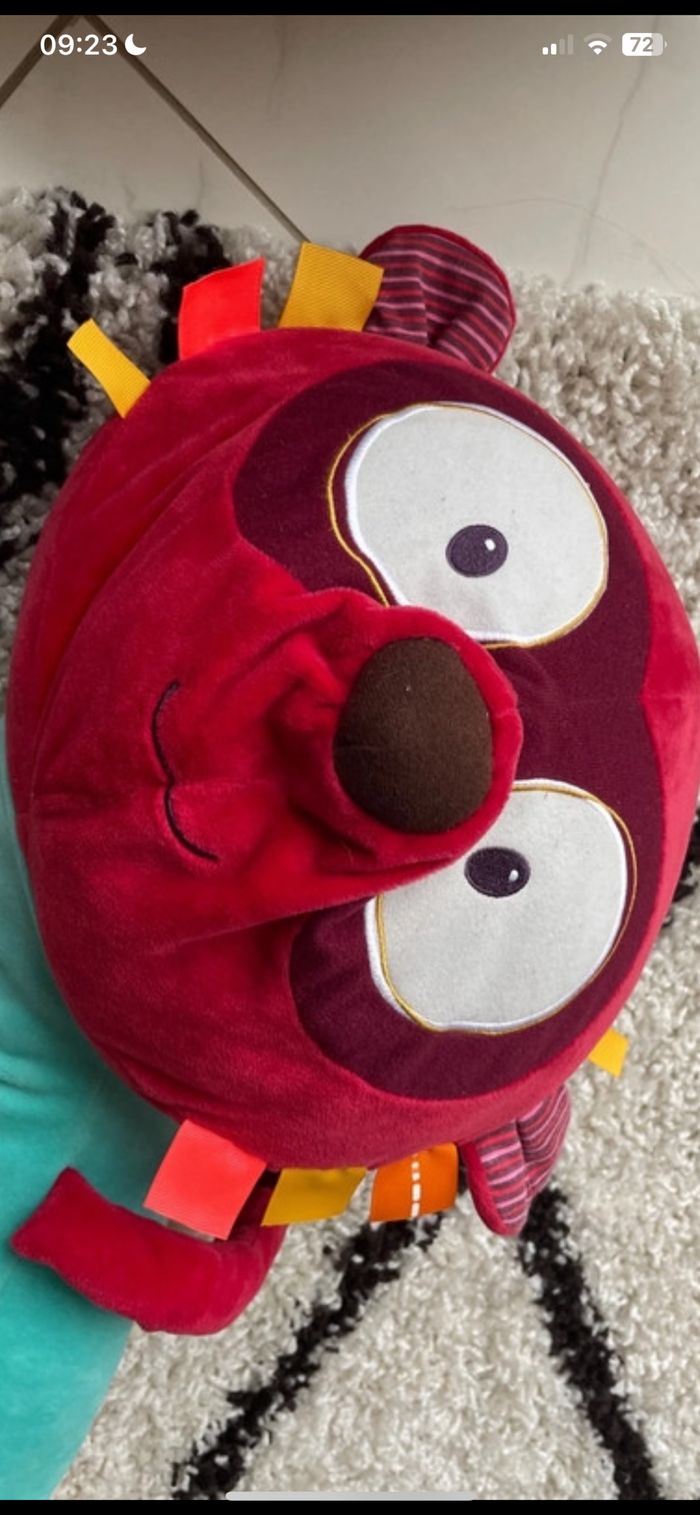 Georges le lémurien - grosse peluche d’éveil et d’activité ! Très peu utilisé Étiquettes, jeux, anneaux, miroir 95cm sans la queue 125cm avec Grand Polochon d'activités Georges le Lemurien Lilliputiens - Le Cirque