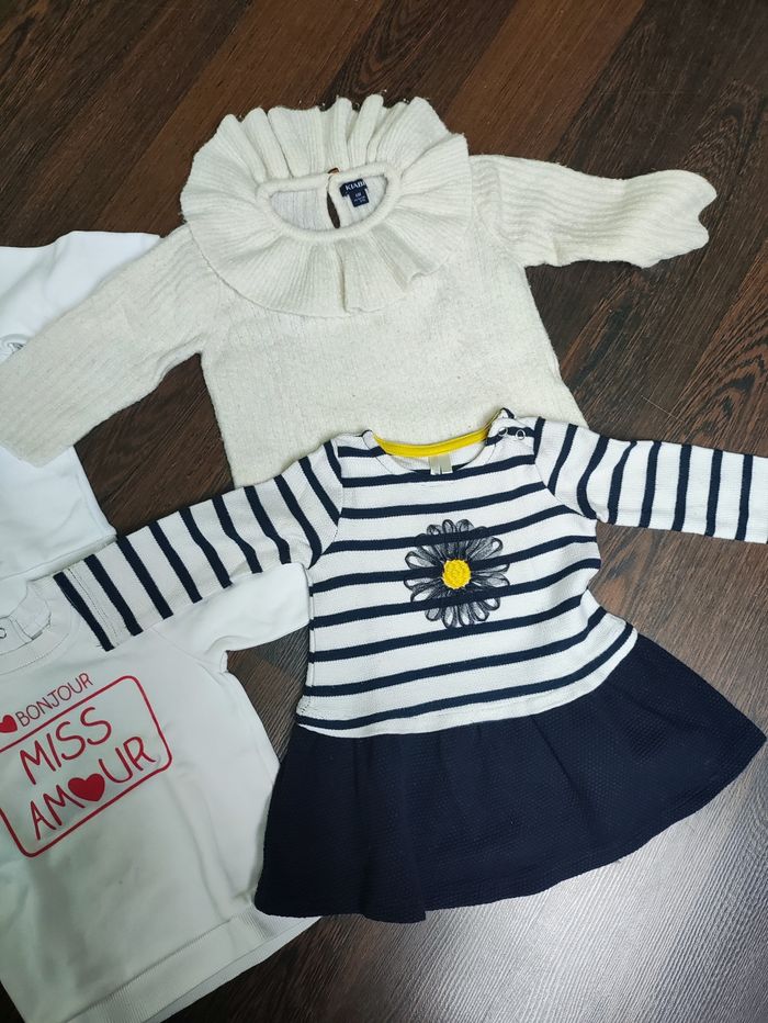 5 pulls manches longues + 1 tunique Marques : Kiabi, orchestra Taille : 6 mois