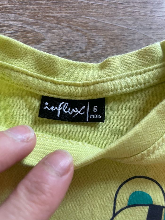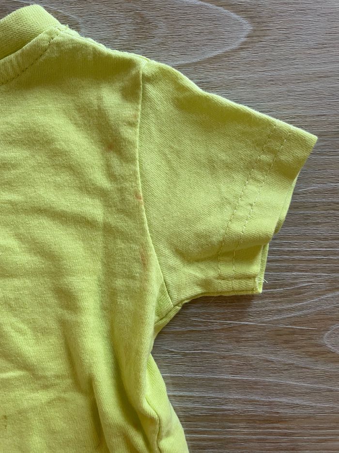 T-shirt 6 mois Quelques taches rougeâtre à l’arrière de la manche droite, voir photo