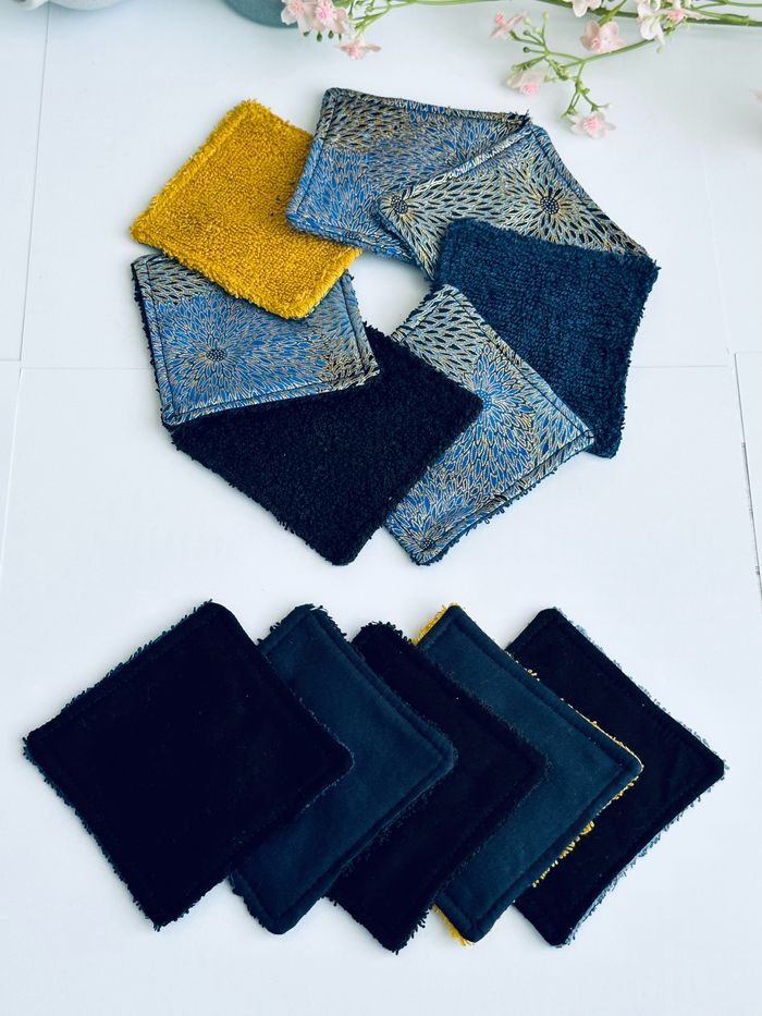 lingettes lavable et réutilisable lot de 12 taille 9x9 cm Avec un côté en éponge en coton lavable à 30° pas de sèche linge et l’essorage au minimum si possible à éviter pensez à humidifier la lingette avant utilisation plusieurs modèles au choix Envoi rapide et soigné Toutes les lingettes sur @ateliersdisalingettes possibilité de faire en plus grande quantité panier à 10€