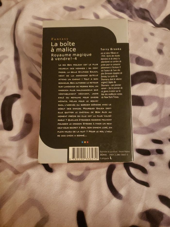 La boîte à Malice, royaume magique à vendre ! -4 un livre de Terry Brooks. Un livre plein de rebondissements féerique avec des sorciers . Bon état un peu corner, petite trace sur le derrière où il y avait l étiquettes. Livre un petit peu jauni sur le dessus des pages mais n affecte en rien son utilisation. Envoie uniquement Mondial Relay ou main propre. #lucylivre22