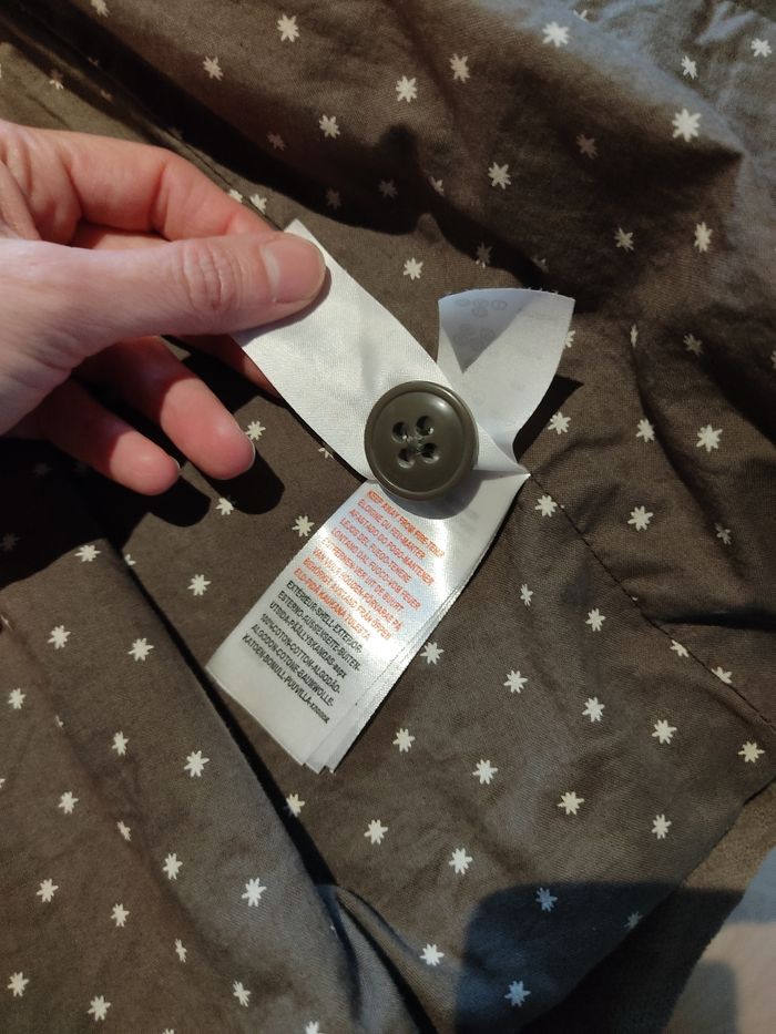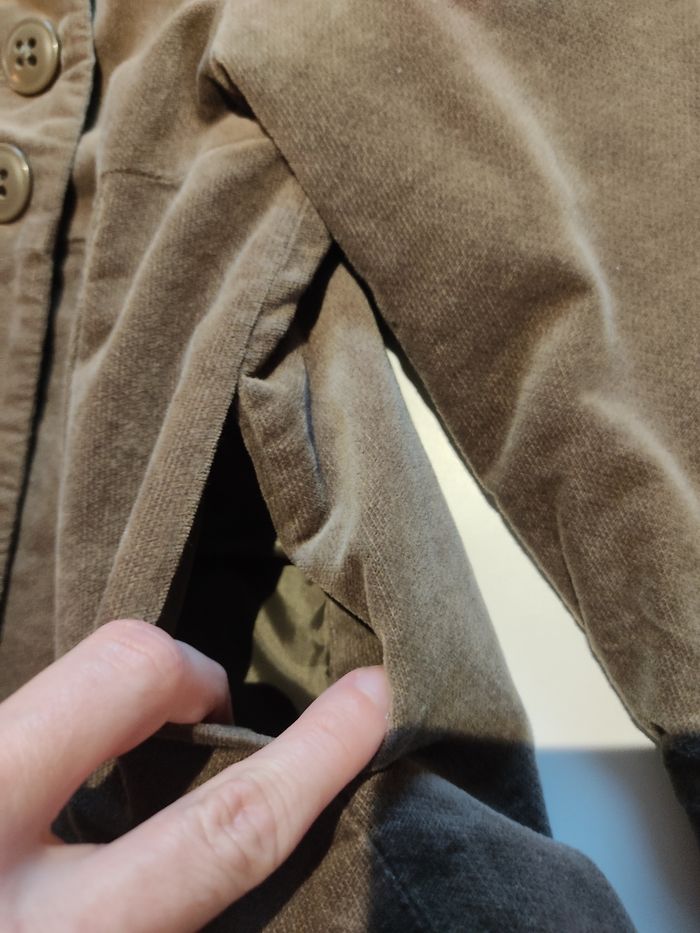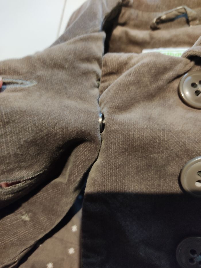 En bon état, voir très bon état. Il a servi à deux petites filles, mais non porté quotidiennement, c'était un manteau en supplément. Se ferme grâce grâce aux 3 boutons, plus un bouton pression situé dessous,au niveau du premier bouton (voir photo).