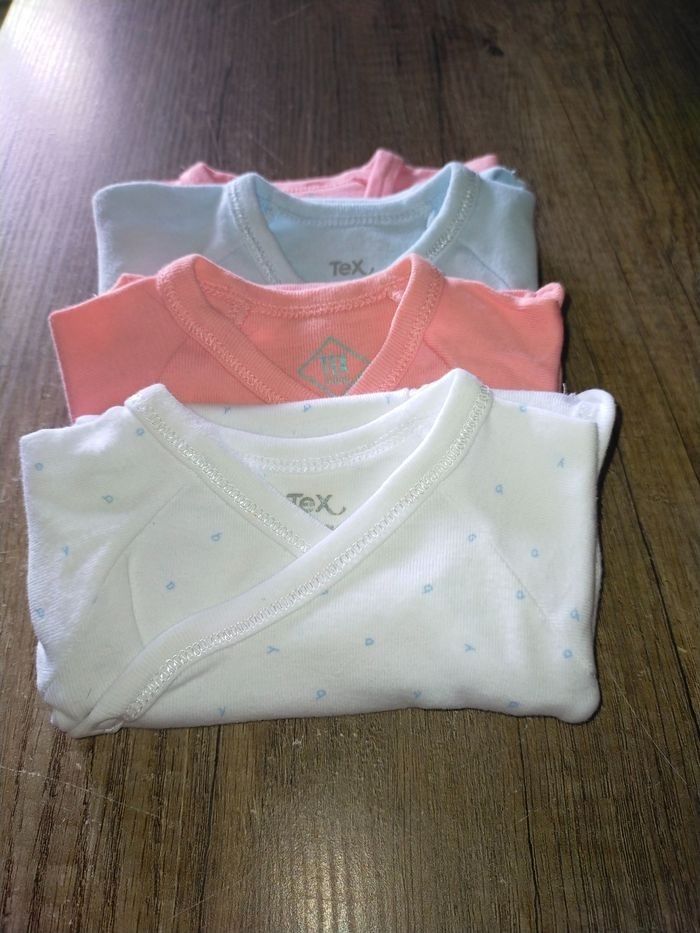 Vend ce lot de 4 bodies manches longues. Taille 0/naissance. En très bon état Marque: Tex