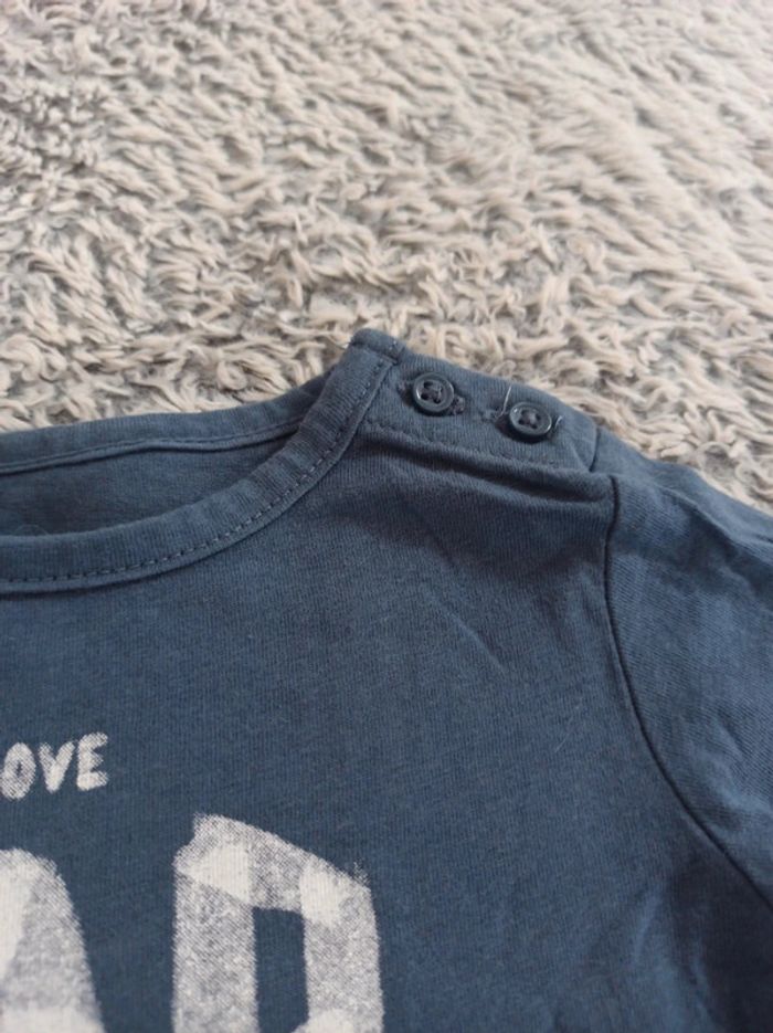 Très bonne état Bouton au niveau des épaules Écriture "Papa d'amour" Plus d'étiquettes #bebegarcon3mois D'autres vêtements disponibles Réduction activé Prix négociable N'hésitez pas à faire un tour dans mon dressing