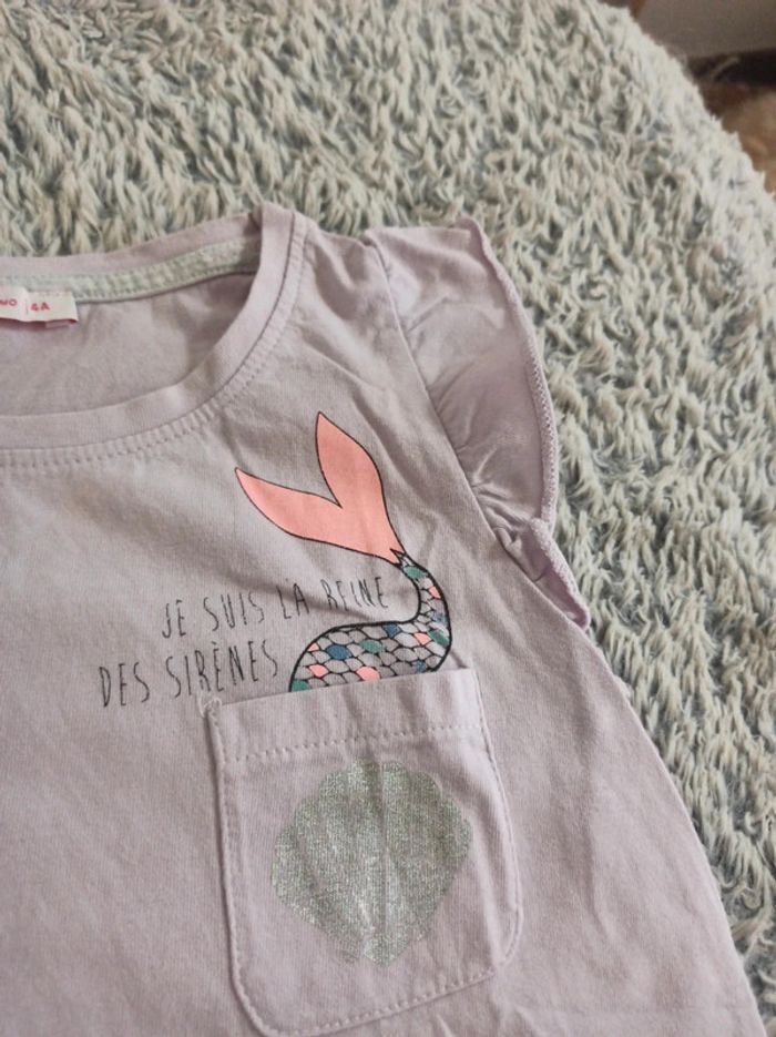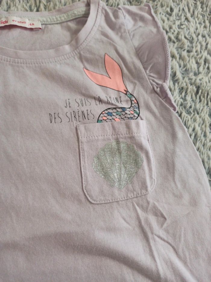 Sans manches Volant au niveau des épaules Petite poche avec dessin coquillages argenté #fille4ans