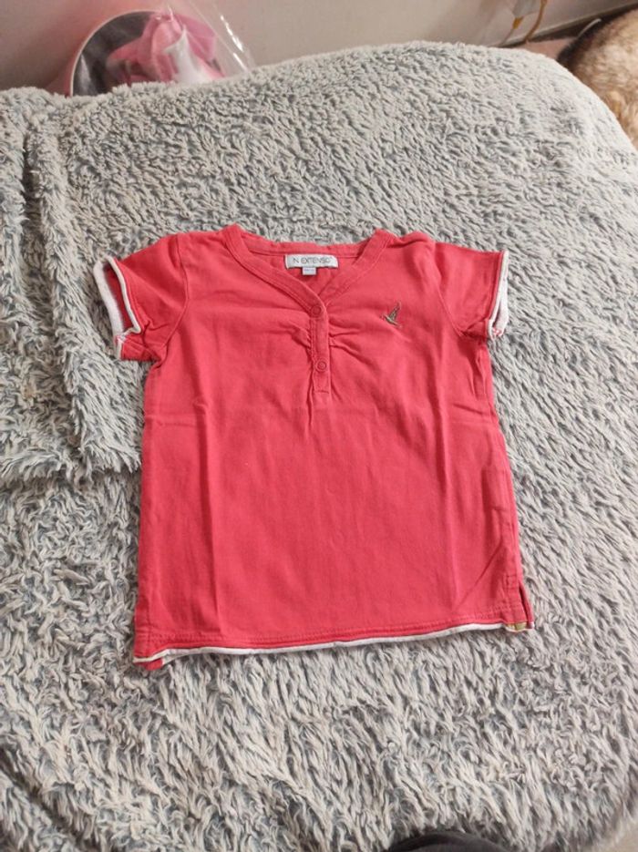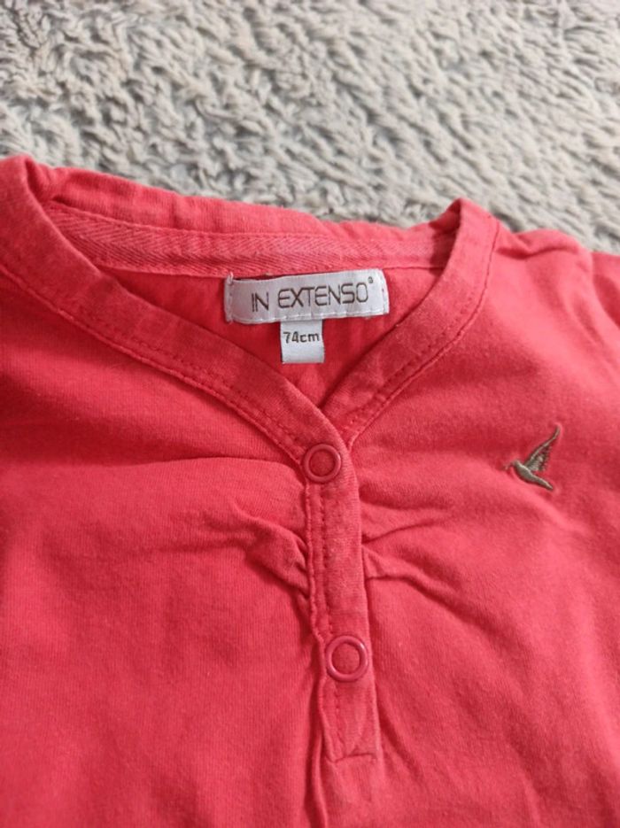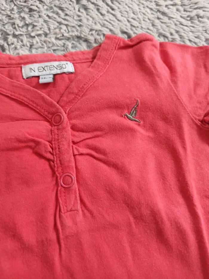 Manche courte Bouton sur le devant Petit oiseau au niveau de la poitrine Détails fleuri au niveau du bout des manches et du bas du t-shirt #bébéfille12mois