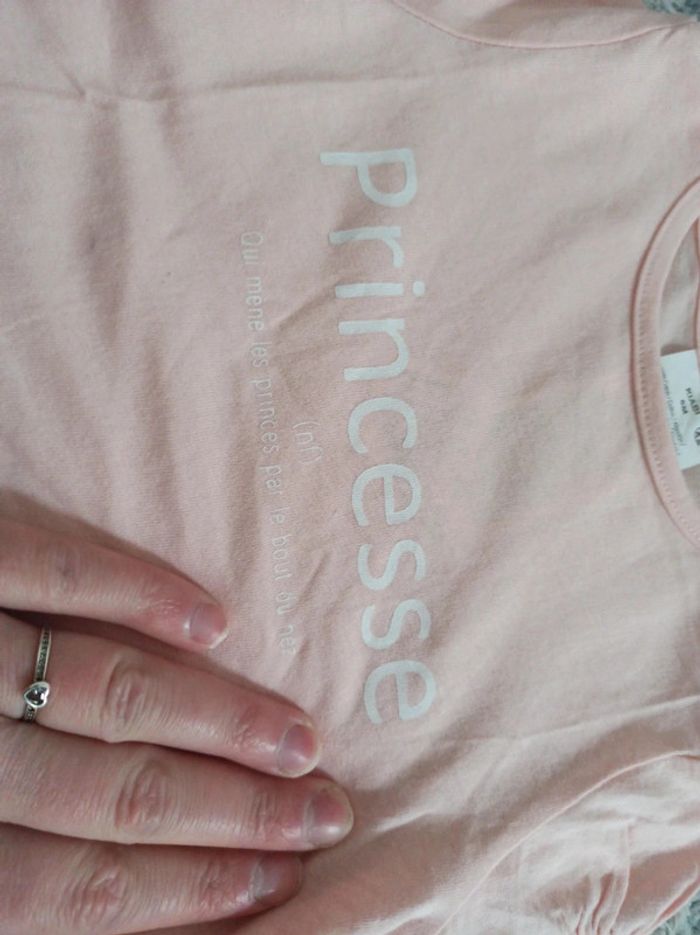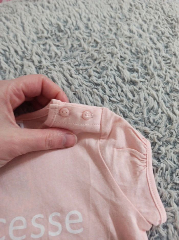 Manche courte Écriture "Princesse qui mène les princes par le bout du nez" en parfait état Deux boutons au niveau des épaules #bebefille6mois