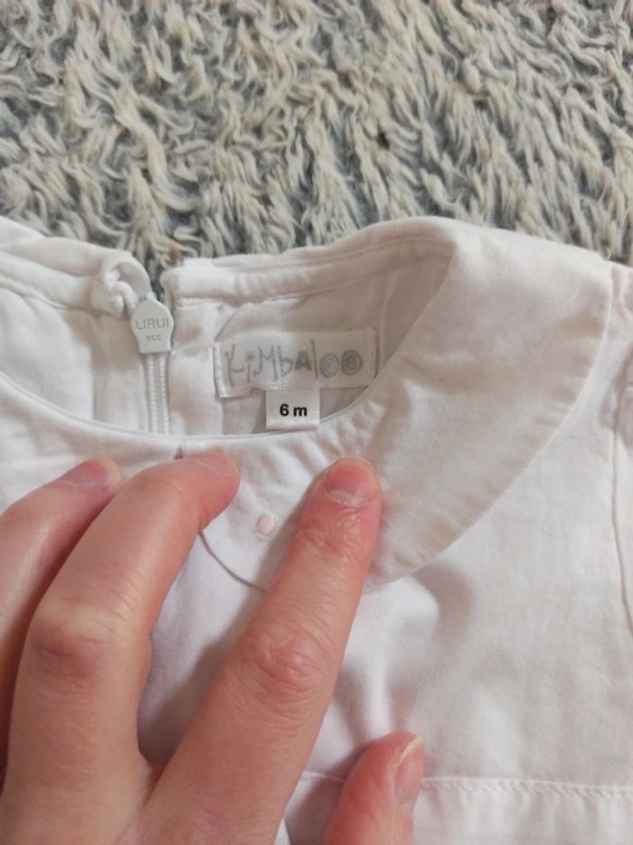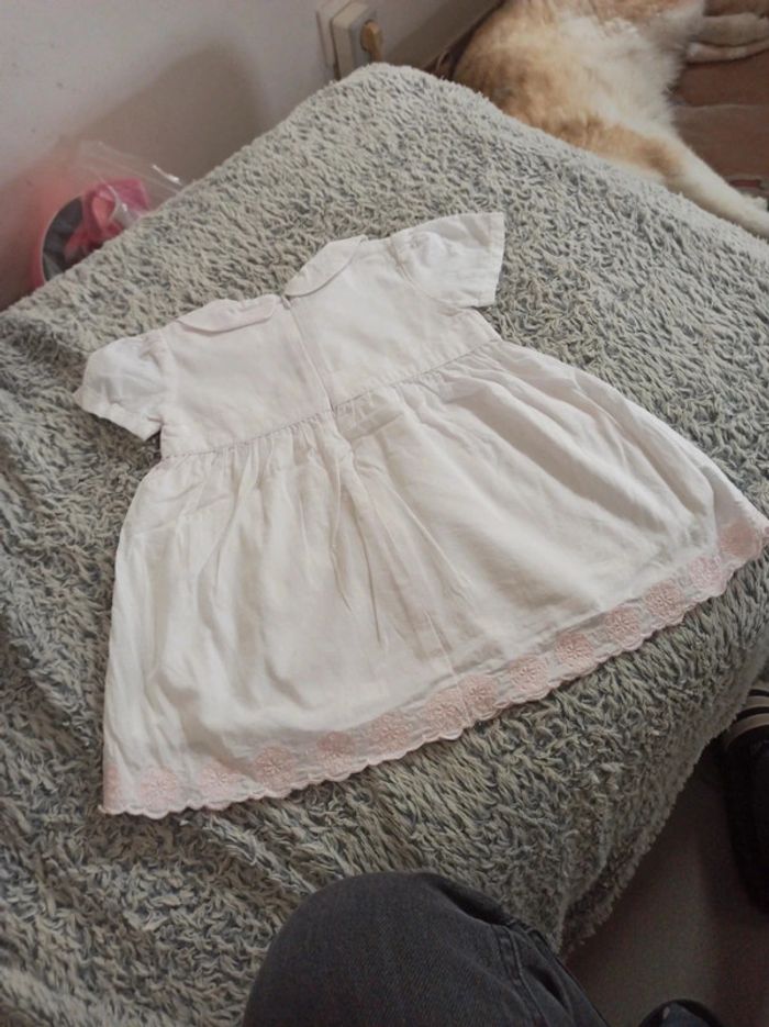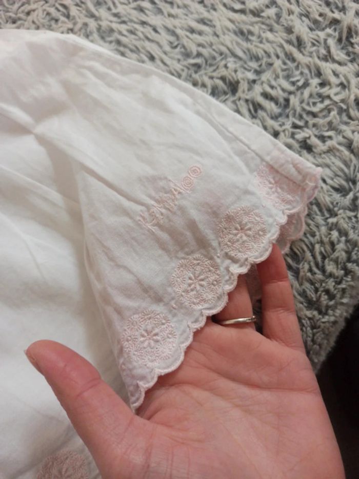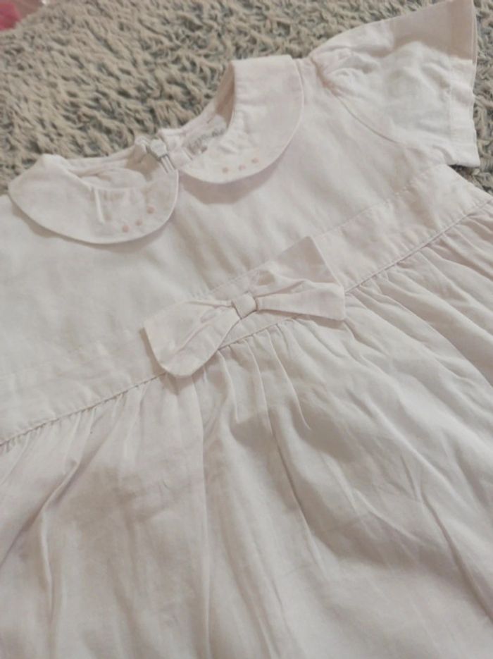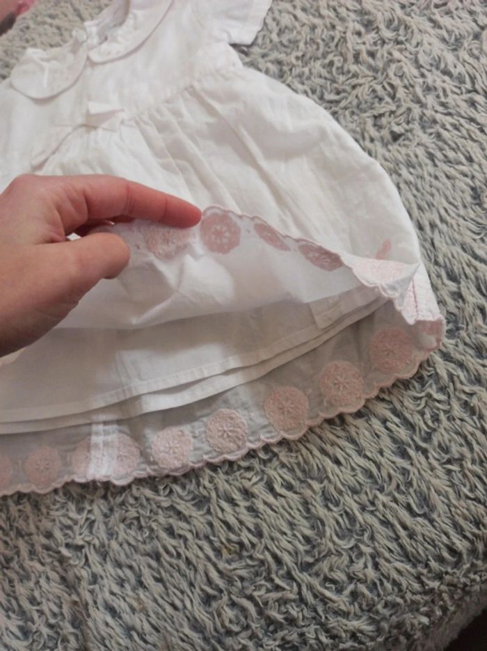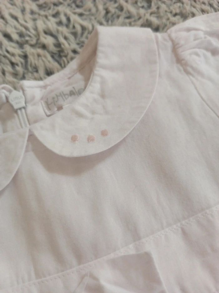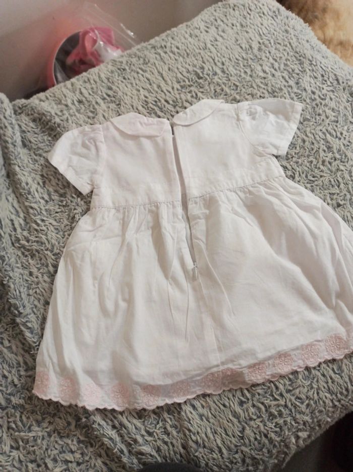 Idéal baptême Manche courte Détails broder rose Petit noeud noeud Fermeture éclair à l'arrière #bebefille6mois