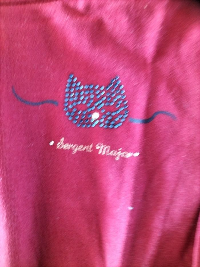 Lot de 2 sous-pulls un bleu marine avec un masque doré et un masque rouge en paillettes et le bordereau avec un masque bleu paillettes marque sergent major le tout en parfait état (cf voir photos).