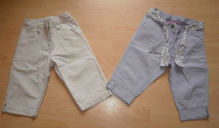Bonjour, Je vends ce lot Eté pour petite fille en taille 3 ans composé de : - 1 pantacourt rayé beige et blanc - Marque Mila Blue. Avec lien de serrage par bouton à la taille. - 1 pantacourt parme - Marque NKY. Avec lien de serrage par bouton à la taille. Le tout est en bon état. Prix demandé : 5€ les 2.